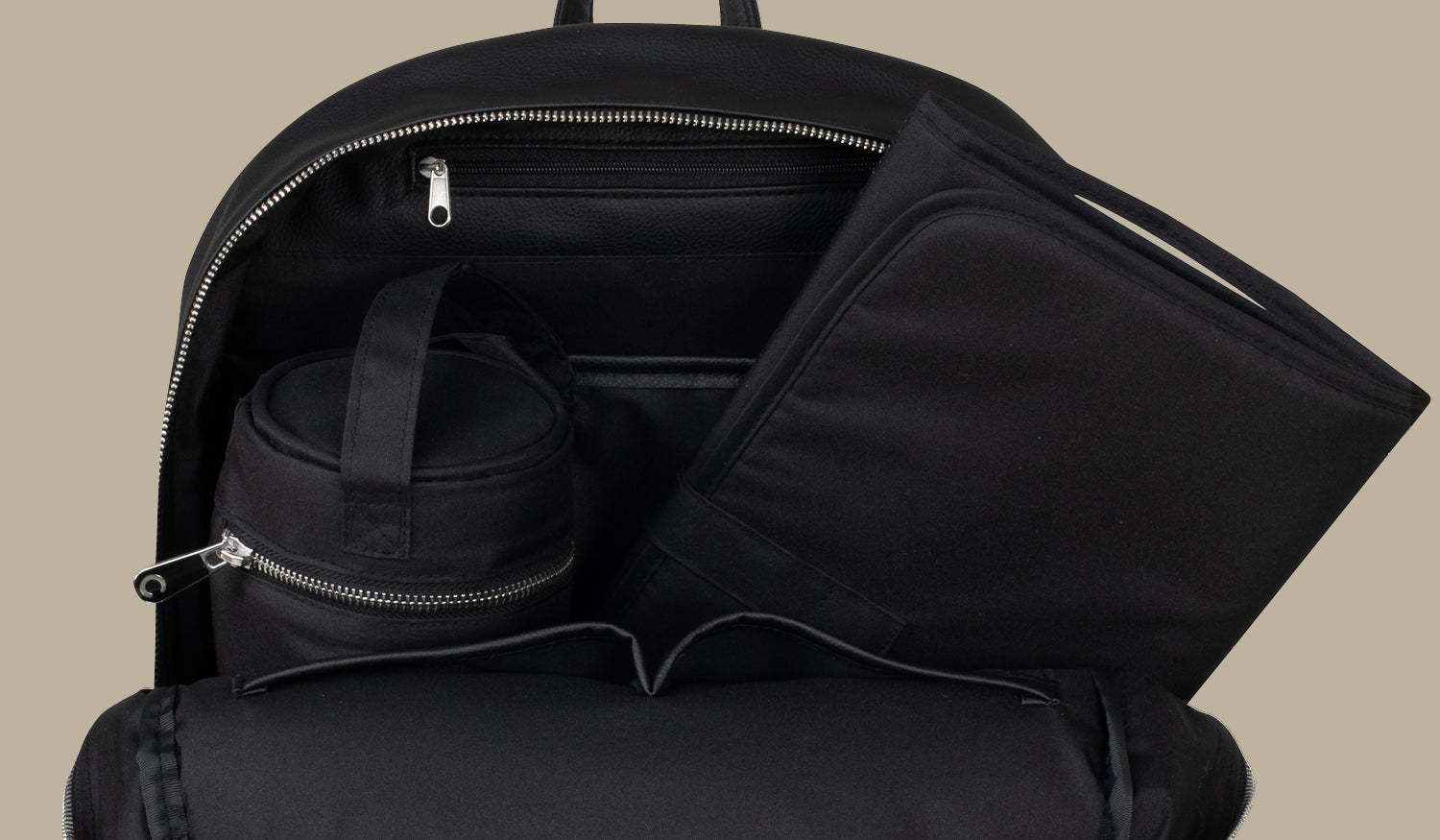 Mit einem isolierten Flaschenhalter, einem gepolsterten Laptop-Fach und einer faltbaren Wickelunterlage ist er die ultimative Tasche für alle Fälle.