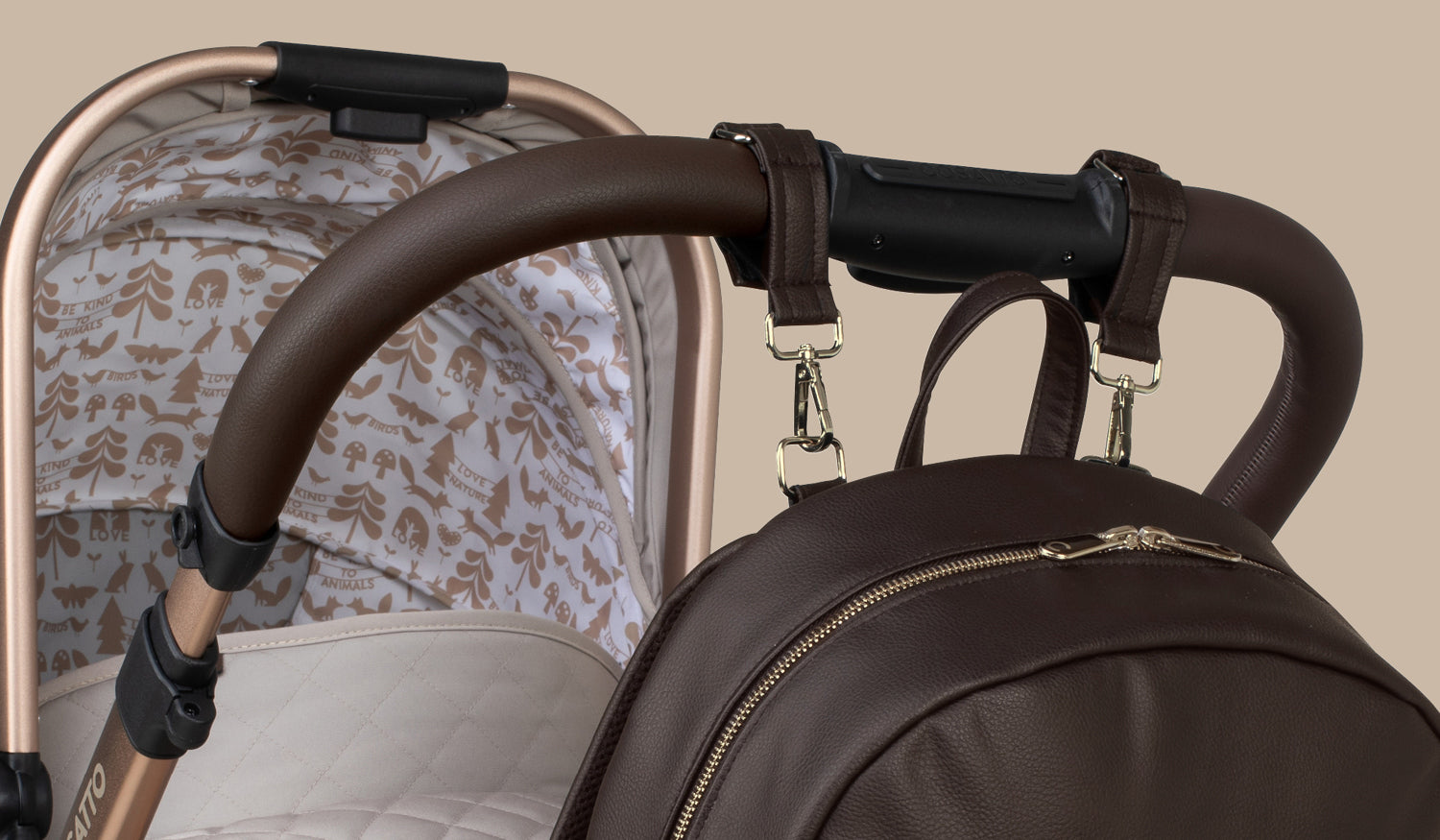 • Abnehmbare Riemen zum Aufhängen der Tasche an der Kinderwagenstange