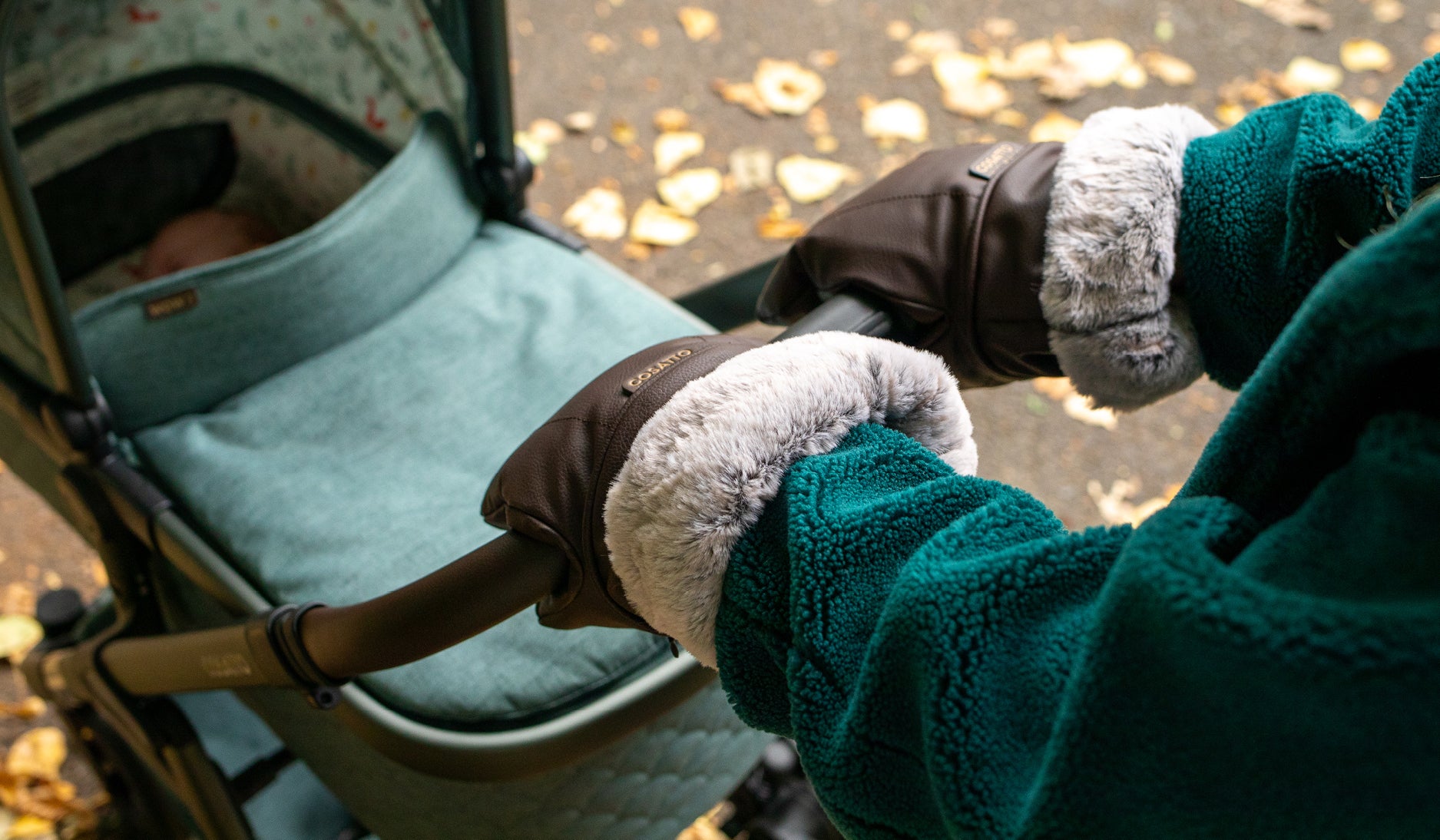 Wiederaufladbare, beheizbare Kinderwagen-Handschuhe für Winterspaziergänge.