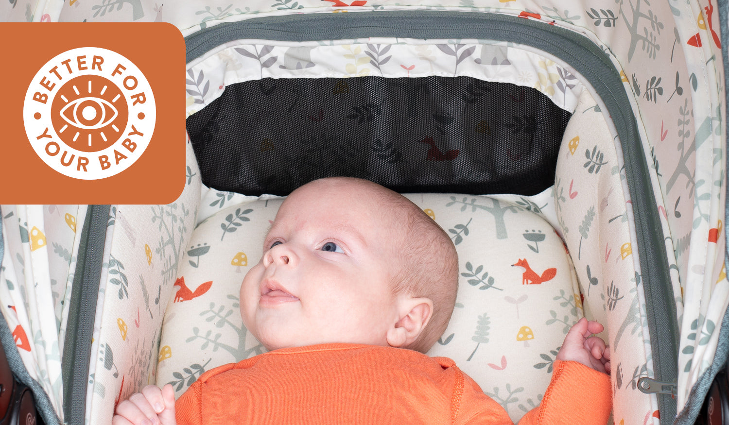 - Doppelter ausklappbarer Sonnenschutz mit UPF100+ Schutz